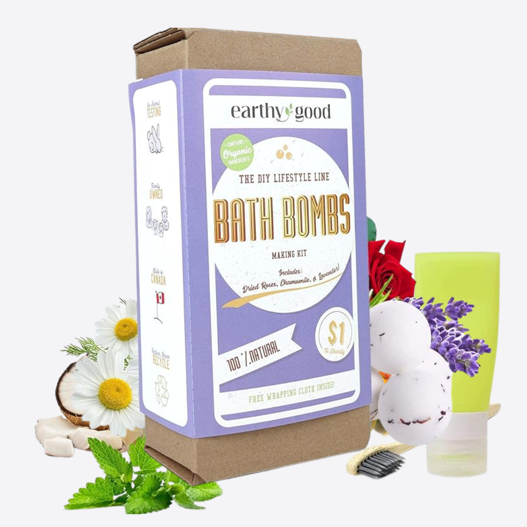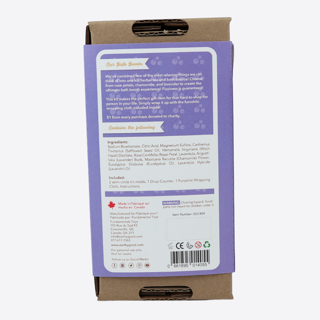Nous avons combiné deux des choses les plus relaxantes auxquelles nous puissions penser dans un seul kit : des tisanes et des bombes de bain ! Choisissez parmi les pétales de rose, la camomille et la lavande pour créer l'expérience ultime de bombe de bain ! Le pétillant est garanti ! Ce kit de bombes de bain DIY est le cadeau parfait pour cette personne difficile à acheter dans votre vie. Enveloppez-le simplement avec le tissu d'emballage furoshiki inclus à l'intérieur !